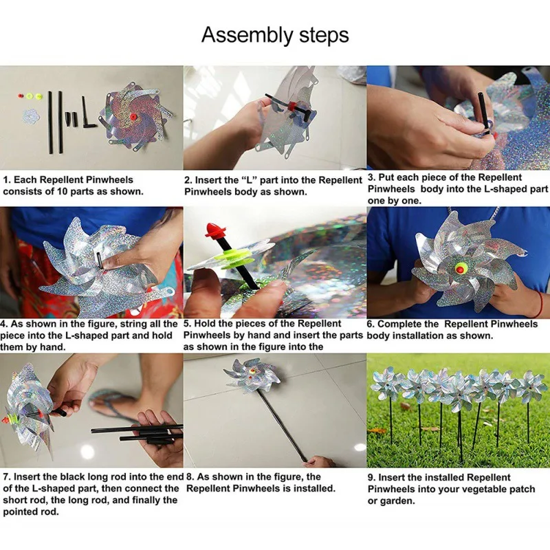 Addition Information of 8PCS bird repellent flash laser windmill sparkling holographic reflection pest control products out